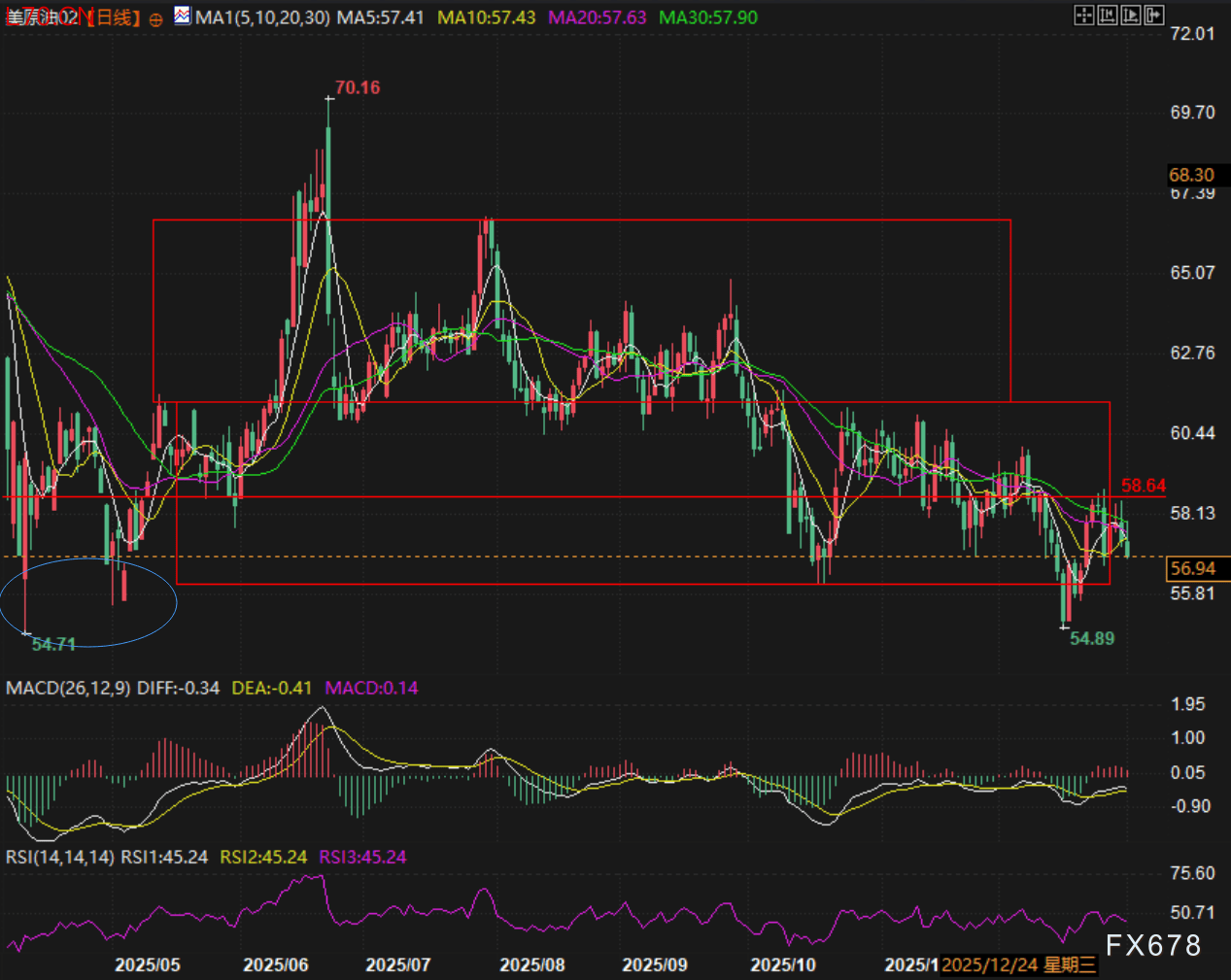 汇通财经APP讯——周五(1月2日)欧洲时段美原油2月期货合约走出冲高回落走势,最高价触及向下拐头的30日线后继续探底。