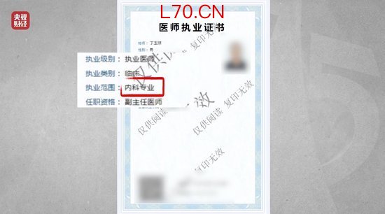 虽然网络视频里,眼科专家丁玉球老师讲得头头是道,但记者查询,丁玉球的确持有医师执业证书,但证书显示执业范围为内科专业,并不是眼科专业,一名内科医师,为何能在网络上摇身一变成为“眼科权威专家”呢?