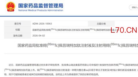 中国首个自主研发创新核药获批上市核医学领域新的突破。