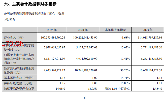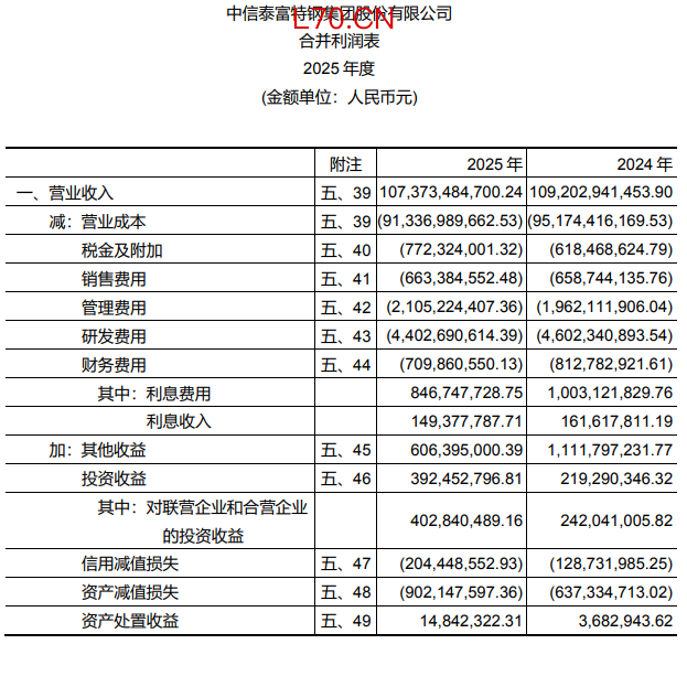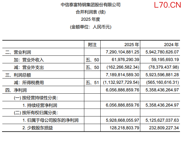 中信特钢2025年年度报告显示,2025年度该公司营业收入1073.73亿元,归属于上市公司股东的净利润59.29亿元,同比增长15.67%,