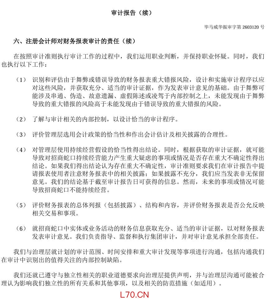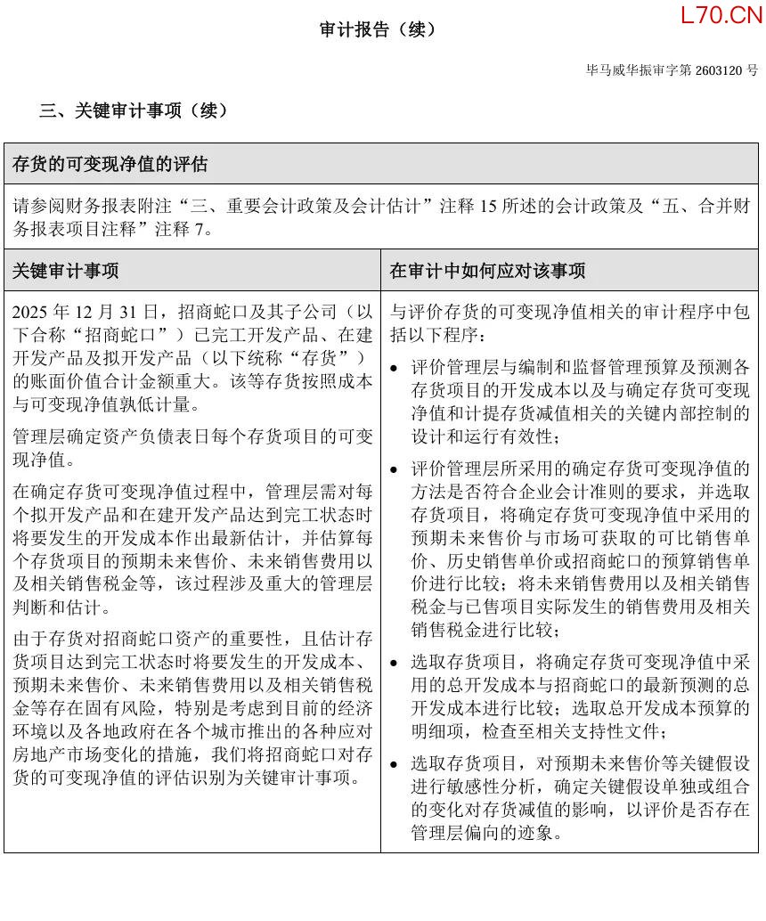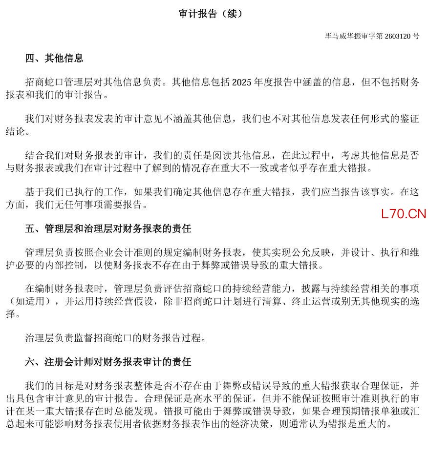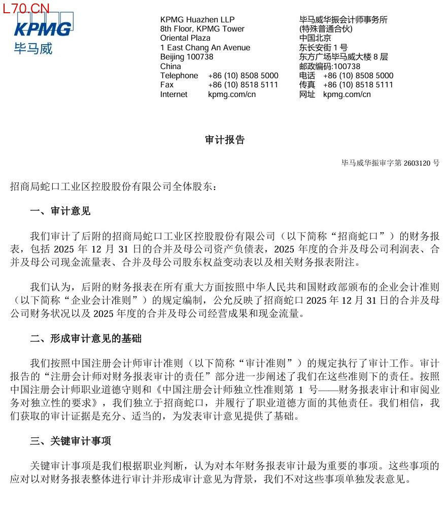 毕马威为招商蛇口出具的2025年度审计报告如下: