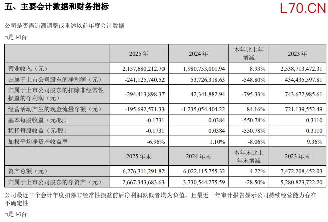 新诺威2025年年度报告显示,2025年度该公司营业收入2,157,680,212.70元,归属于上市公司股东的净利润-241,125,740.52元。