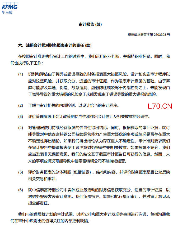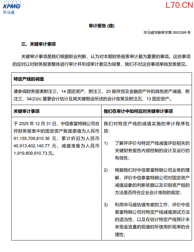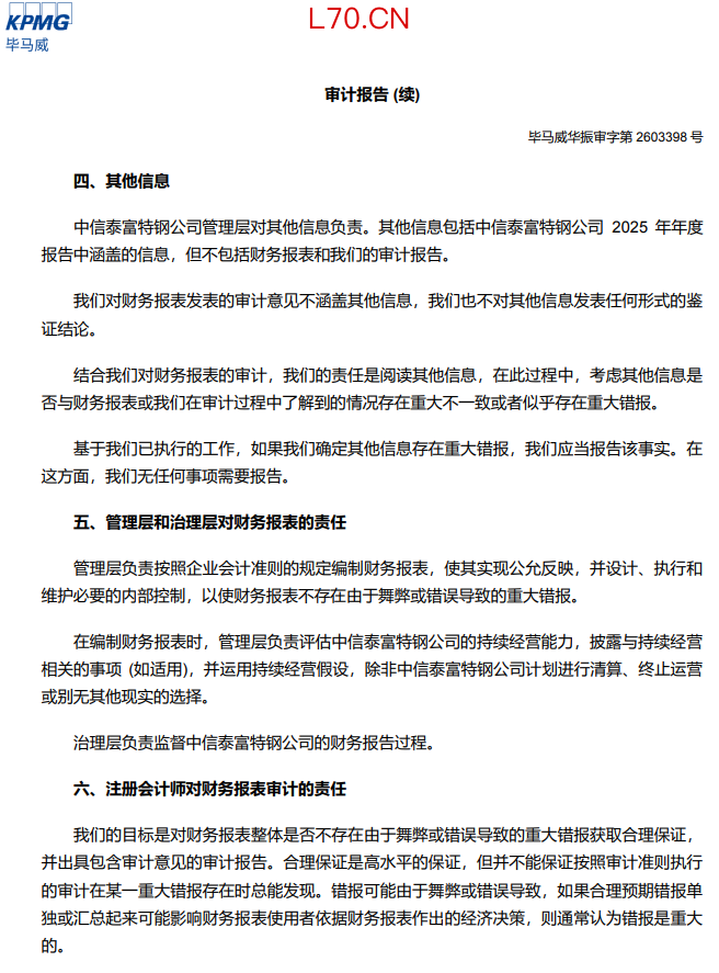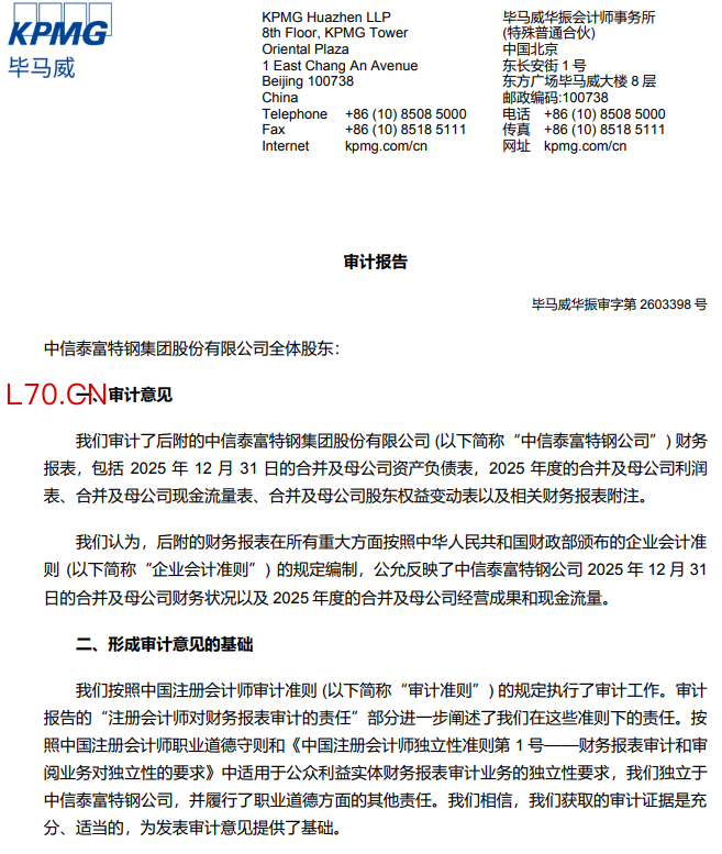 毕马威为中信特钢出具的2025年度审计报告如下:
