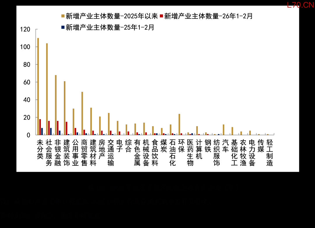 2.产业债新增发行主体概况:2026年1-2月产业债新增发行主体数量2025年明显增加,行业集中于社会服务、非银金融、建筑装饰、公用事业、商贸零售,但仍以类城投产业主体为主导。1-2月月类城投产业主体共有85家,其中股权投资类平台占比较高,整体资产规模较小、信用资质偏弱。