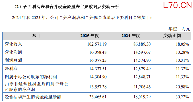 招股说明书显示,经审计机构审阅,隆源股份2025年全年营业收入为10.26亿元,同比增长18.05%;归母净利润为1.43亿元,同比增长11.33%。