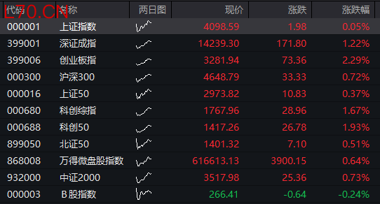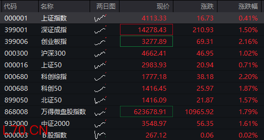 A股:截至发稿,沪指涨0.41%,深成指涨1.50%,创业板指涨2.16%。