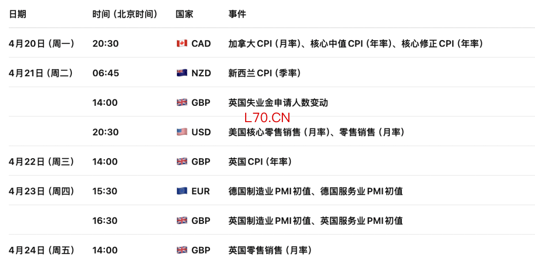4月20日周一,欧元区数据焦点将集中于北京时间下午14点即将发布的德国PPI生产者物价指数报告。美国在基本面上暂无重要数据和事件公布。