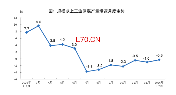 国家统计局:1—2月份,规上工业原煤产量同比下降0.3%国家统计局:1—2月份,规上工业原煤产量同比下降0.3%