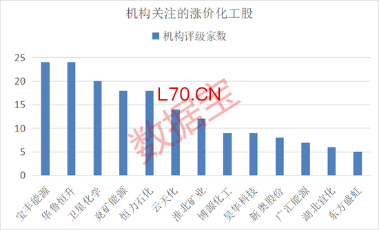 从机构关注度来看,评级机构数量在5家及以上的个股合计有13只,其中宝丰能源和华鲁恒升等个股获评级机构数量居前,均超过20家。